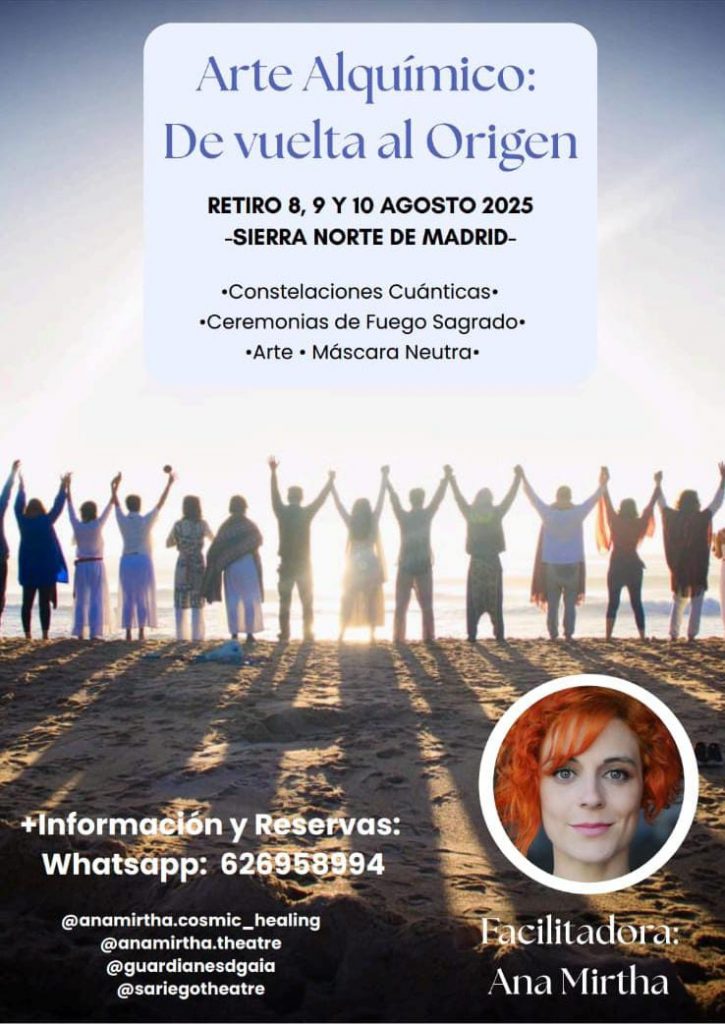 Un recorrido guiado a través del *movimiento, el juego, el arte, la máscara neutra, las constelaciones cuánticas y las ceremonias de fuego sagrado* como llaves de acceso a tu esencia más auténtica.